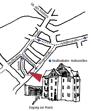 Sprichwörtlich gut gefunden: Besuchen Sie uns. Im Erfurter Süden, Stadtbahnlinie 5 – Steigerstraße, das „Rote Haus“, in der Nerlystraße 6 /Ecke Steigerstraße.
